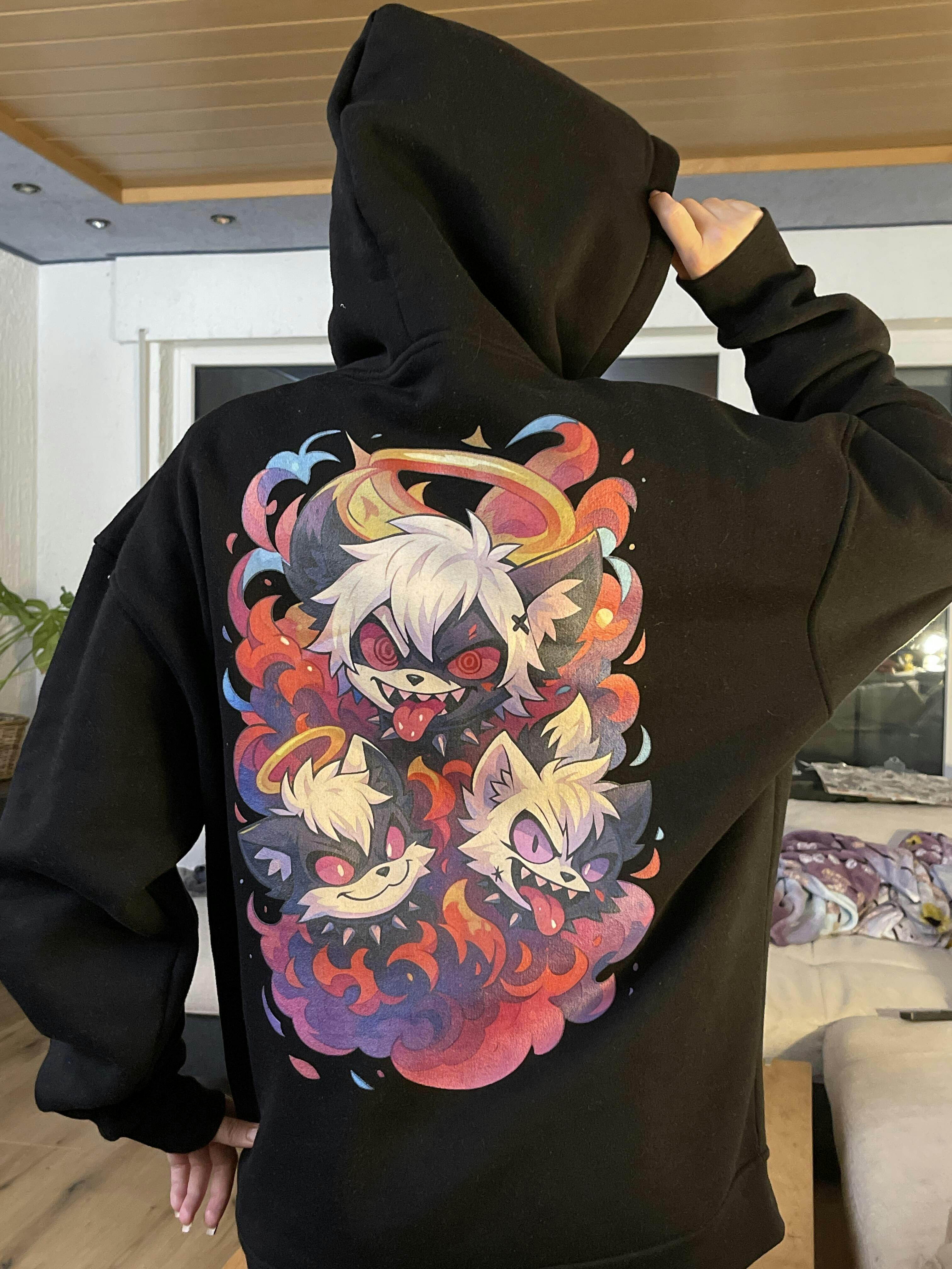 Leuchtende Farben, Anime-Energy, rauer Brush-Look: Dieser Hoodie ist dein Statement zwischen kawaii und chaotic. Für Con, City und Late-Night-Queues – wenn dein Style lacht und beißt.